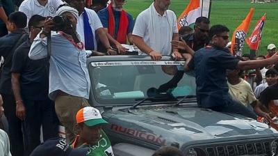 खुली जीप में सवार हो राहुल गांधी ने किया रोड शो