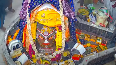 महाकालेश्वर मंदिर में अद्भुत नज़ारा, भस्म आरती के दौरान बाबा महाकाल मस्तक पर शिवलिंग धारण किए दिखे