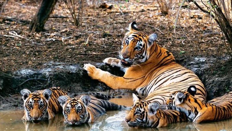 बाघिन के बच्चों के साथ वीडियो वायरल