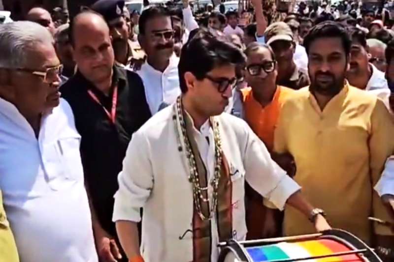 शोभायात्रा में ढोल बजाते नजर आए सिंधिया, महावीर जयंती का पर्व धूमधाम के साथ मनाया