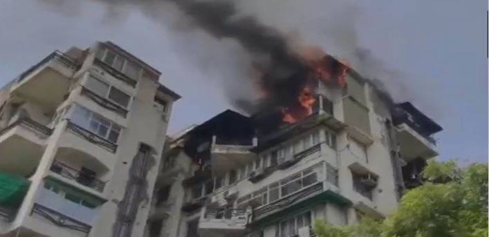 द्वारका सेक्टर-13 की बिल्डिंग में लगी भीषण आग