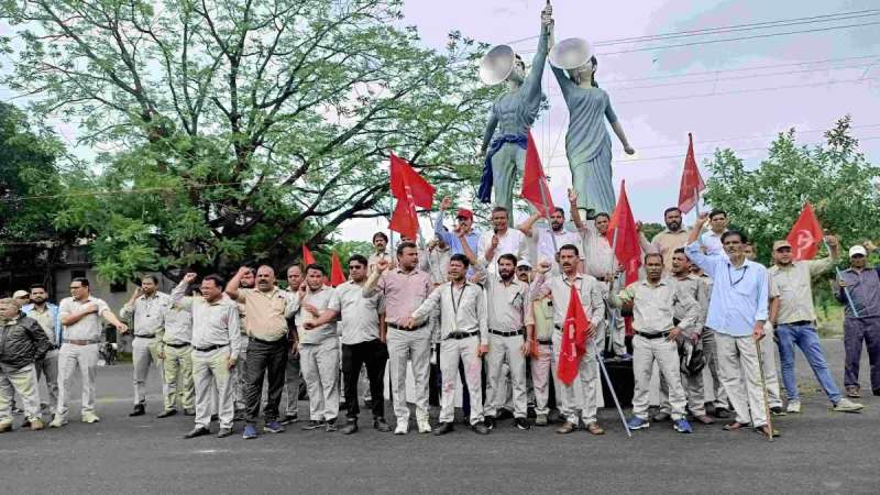 सीटू यूनियन के बैनर तले कर्मचारियों ने जताया विरोध