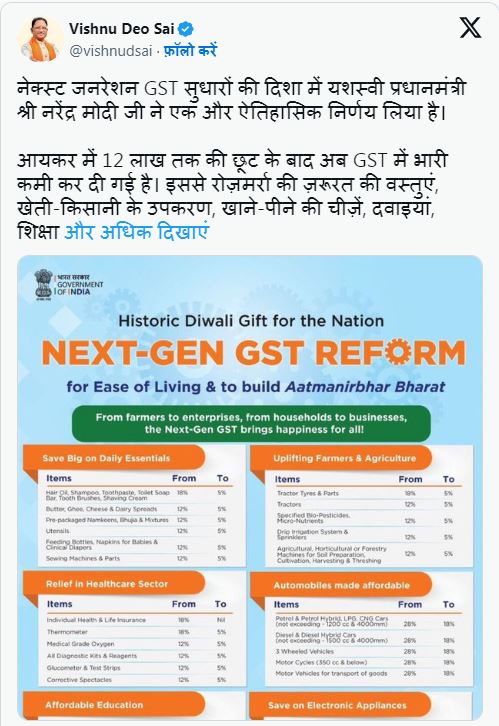 जीएसटी सुधारों से आम आदमी की जिंदगी होगी आसान, बाजारों को मिलेगी नई ऊर्जा : CM साय