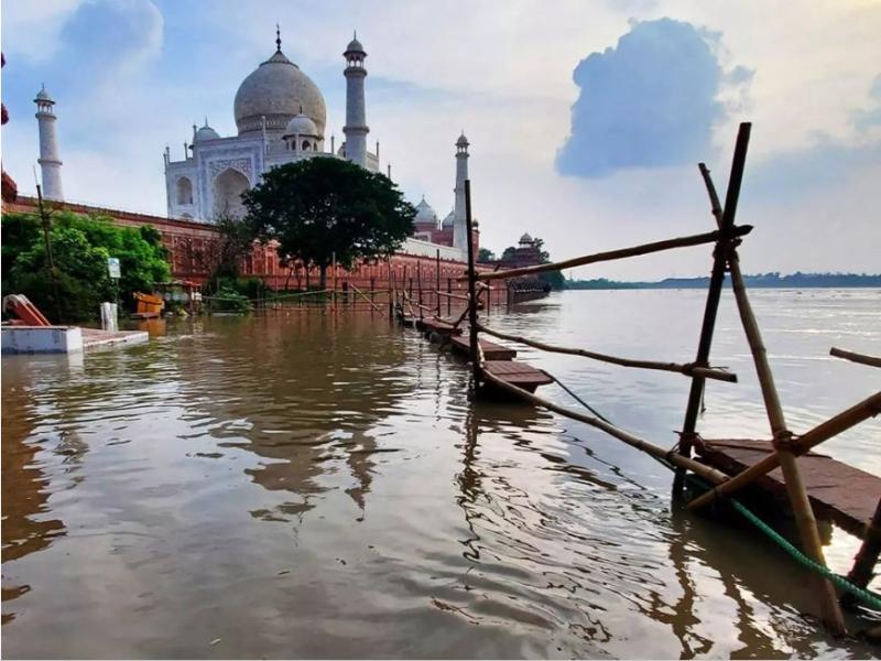 आगरा में रिकॉर्ड तोड़ बारिश और यमुना का उफान, ‘ताजमहल’ के नज़दीक तक पहुंचा पानी
