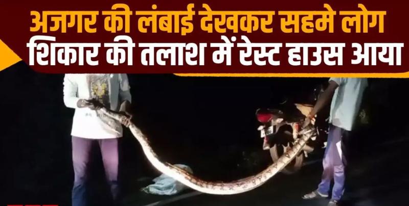 रेस्ट हाउस में फैली दहशत: शिकार की खोज में घुसे अजगर को रेस्क्यू टीम ने निकाला, दो लोगों को साथ मिलकर उठाना पड़ा