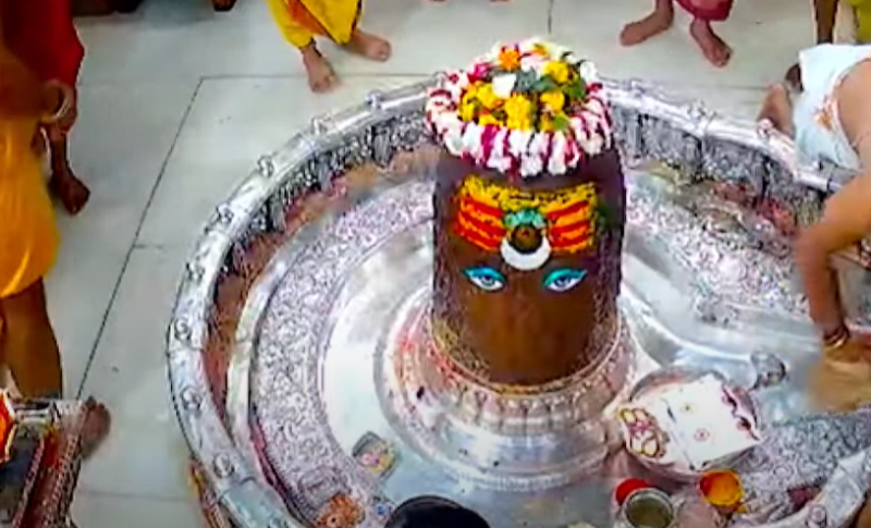 महाकालेश्वर मंदिर में अद्भुत नज़ारा, भस्म आरती के दौरान बाबा महाकाल मस्तक पर शिवलिंग धारण किए दिखे