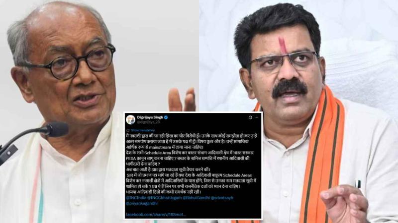 हिडमा की मौत पर सियासी जंग: दिग्विजय सिंह ने उठाए सवाल, विजय शर्मा ने दिया करारा जवाब, जानिए क्या है पूरा मामला?"