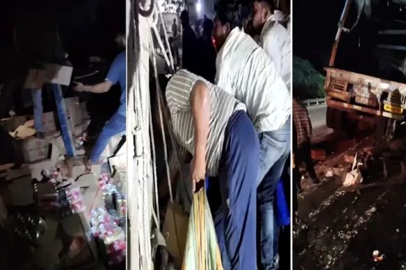 हादसे के बाद अफरा-तफरी: सड़क पर बिखरी शराब, भीड़ की लूट और पुलिस पर हमला