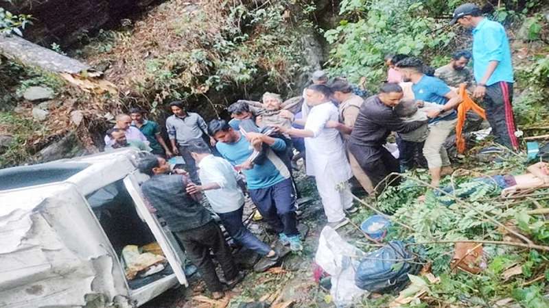 सिसौना सितारगंज से गर्मियों की छुट्टी मनाने भदकोट जा रहे छह सदस्यीय परिवार के तीन सदस्यों की मौत हो गई। तीन भाइयों के सिर से मां-बाप का साया उठ गया। घायल तीनों बच्चों का एसटीएच में इलाज चल रहा है। मूलरूप से भदकोट निवासी महेश चंद्र परगाई (40) सिडकुल में नौकरी करते थे। वह सिसौना सितारगंज में छह सदस्यीय परिवार के साथ रहते थे। बच्चों के स्कूल की छुट्टी पड़ी तो उनकी पत्नी पार्वती (34) ने परिवार के साथ भदकोट जाने का प्लान बनाया। बुधवार को दपंती अपने चार बच्चों के साथ सितारगंज से बस से हल्द्वानी आए। यहां से मैक्स वाहन में बैठकर भदकोट के लिए रवाना हो गए। खनस्यू बाजार से आगे मैक्स खाई में गिर गई। इस हादसे में महेश चंद्र परगाई (40), पार्वती परगाई (34) और पुत्री कविता परगाई (10) की मौके पर ही मौत हो गई। उधर इनके तीन बेटे पंकज परगाई (12), मनोज परगाई (10) और लोकेश परगाई समेत सात घायल हो गए। देर रात सभी घायलों को सुशीला तिवारी अस्पताल में भर्ती कराया गया।