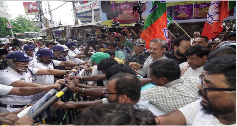 विरोध प्रदर्शन के दौरान स्थिति उस समय तनावपूर्ण हो गई जब भाजपा नेता सुकांत मजूमदार, जगन्नाथ चटर्जी और अनुपम भट्टाचार्य ने पुलिस बैरिकेड्स को तोड़ते हुए आगे बढ़ने की कोशिश की. पुलिस ने पहले ही स्पष्ट कर दिया था कि बिना अनुमति के किसी भी सार्वजनिक सभा की इजाजत नहीं दी जाएगी. इसे लेकर पुलिस और भाजपा कार्यकर्ता आपस में भिड़ गये.