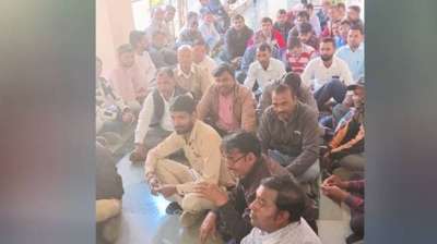 दैनिक वेतनभोगी कर्मचारियों ने मोहन सेन के कार्यालय के सामने जोरदार प्रदर्शन किया