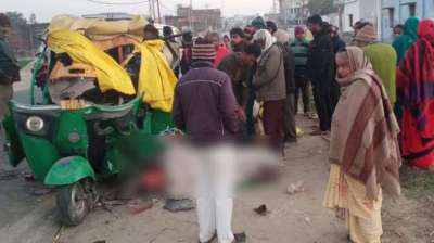 सड़क पर खड़े गन्ने से लदे ट्रक में आॅटो भिड़ गया, चार लोगों की मौत