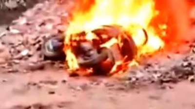 कानपुर में स्कूटी स्टार्ट न होने पर युवक ने गुस्से में अपनी स्कूटी को किया आग के हवाले
