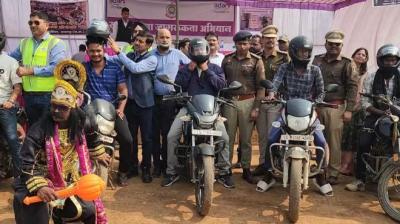 हेलमेट जागरूकता अभियान, वाहन चालकों को नि:शुल्क हेलमेट वितरित